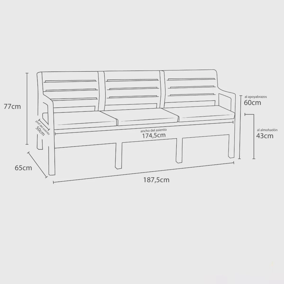 | Dimensiones | 52 cm alto x 70 cm ancho x 80 cm largo |